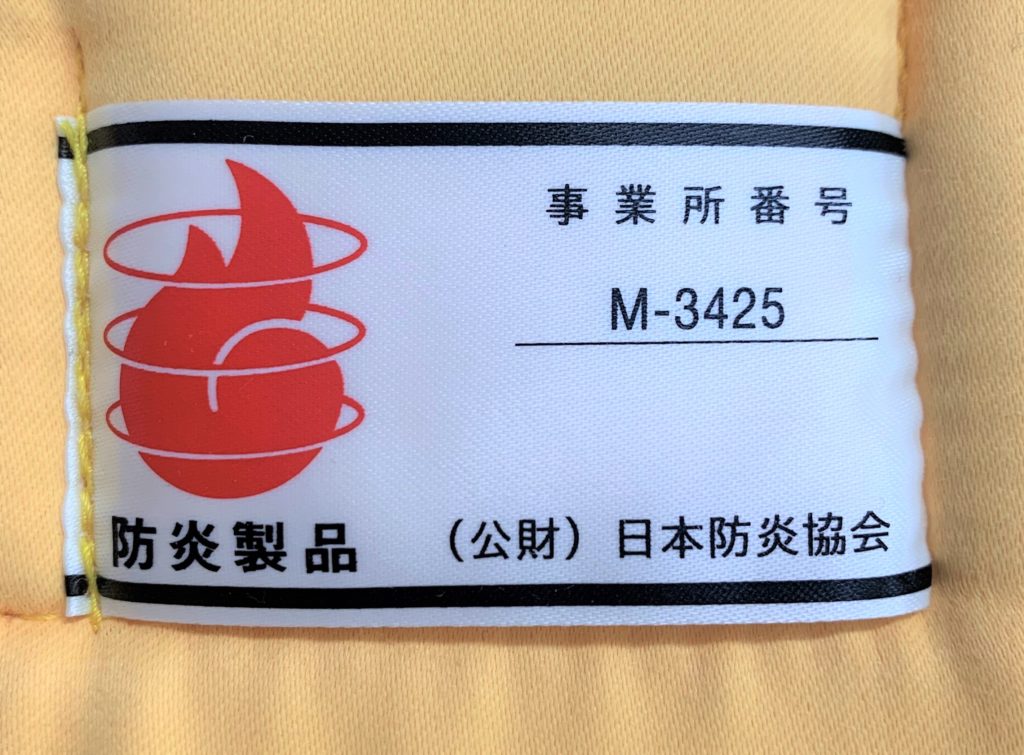 こちらは日本防炎協会が定める洗濯性能試験、衝撃吸収性試験、防炎性能試験、全てを合格した製品にだけ与えられる認定ラベルになります。